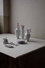 En mars dernier, avec gigadinette (duo d'artistes créé par Jane Bidet et Clara Valdes) nous faisions une résidence d’un mois autour de la porcelaine pour une exposition visible jusqu’en juillet dernier. Nous avons décidé de mettre en vente certaines pièces restantes, considérées comme des épreuves d’artistes, où chacune est unique malgré son moule commun.